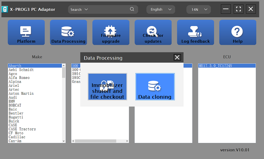 1. Click the [Data Processing] button on the main page, as shown in Figure 11, and select [Immobilizer Shutoff and File Checkout] [Data Cloning] process Volkswagen series and Porsche engine data, as shown in Figure 12.