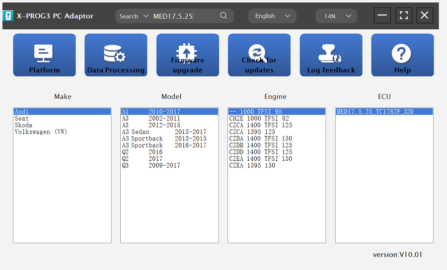 (2) Method 2: Query the desired ECU by entering a value in the search box. The search categories include brand, Bosch number and ECU type. For example, search for the MED17.5.25 engine by ECU type, as shown in Figure 3.